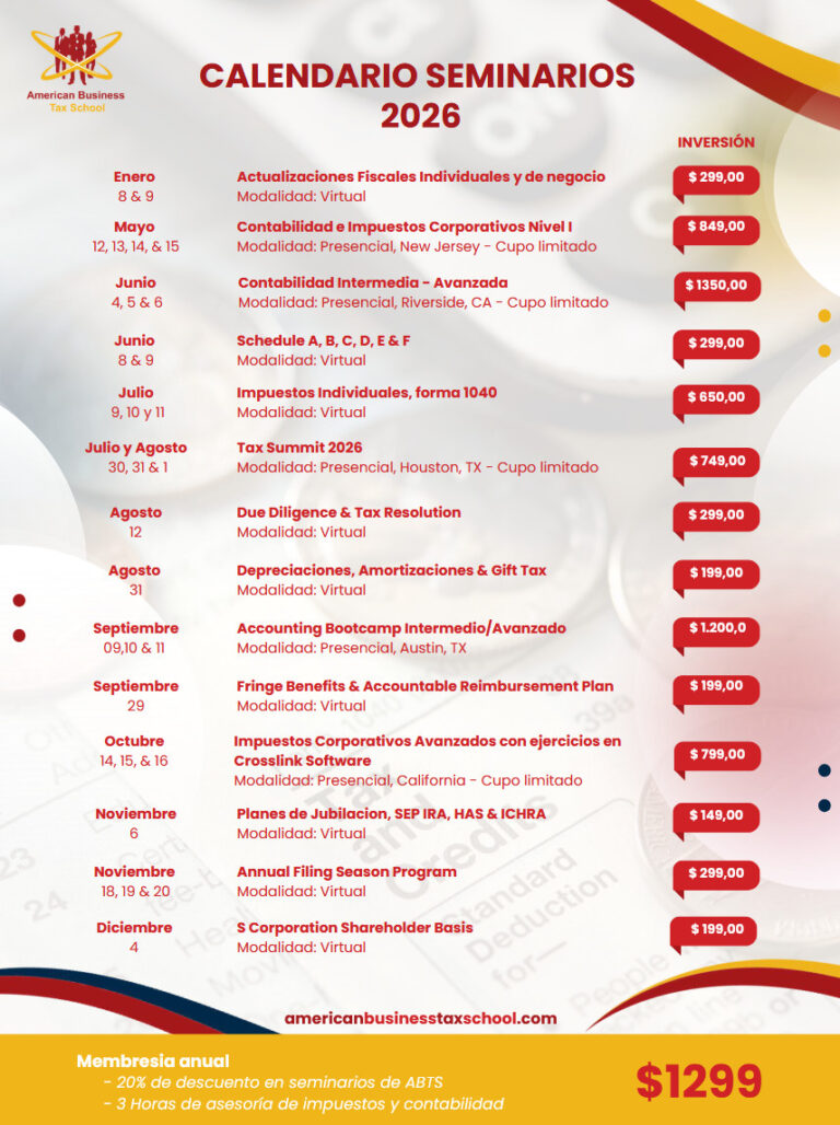 Además, aprenderás a implementar el poderoso Accountable Plan, una estrategia fiscal que permite reembolsar millaje, home office, comidas de negocio y viajes sin generar cargas tributarias.