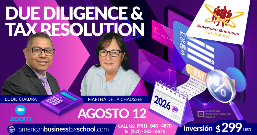 Domina dos áreas clave de la práctica tributaria: Due Diligence (Debida Diligencia) y Tax Resolution (Resolución de Problemas con el IRS).