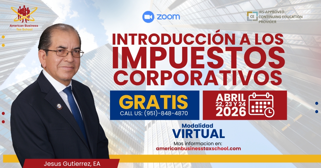 Quiero darle las gracias al Profesor Gutiérrez, profesional de taxes por la oportunidad de estar en 9 sesiones, 100% recomendable American Business Tax School.